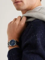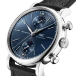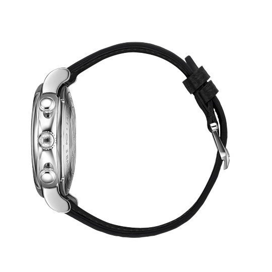 Stainless steel case, Automatic, self-winding, Diameter 39.0 mm, Black calfskin strap, Strap width 20.0 mm.
